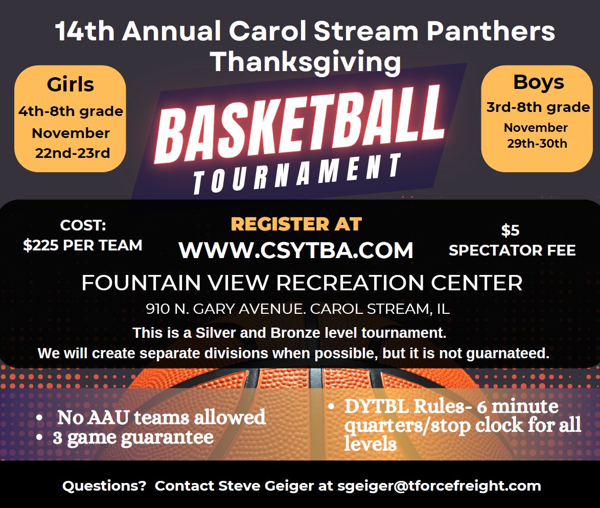 Carol Stream Thanksgiving Tournament | Tournament Information! Boys Grades 3-8 |